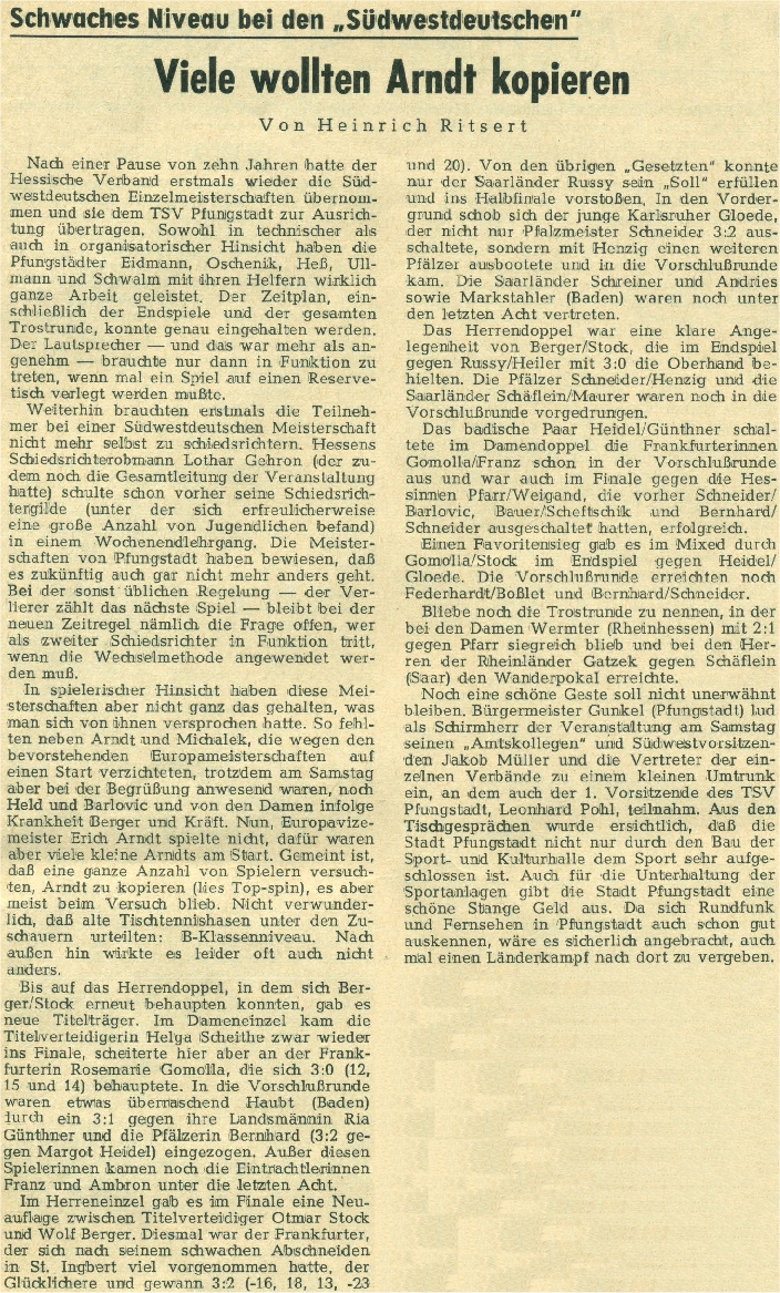 | 2. | Margot Heidel (Gloede) Wolfgang Gloede | TSG Heidelberg ESG Karlsruhe | BaTTV BaTTV |