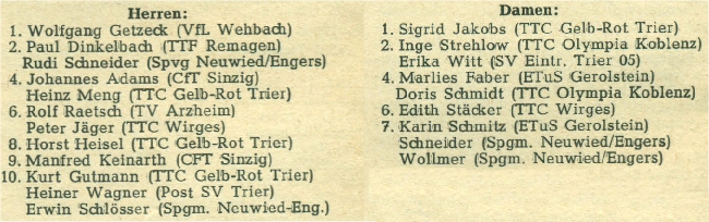 | 3. | Inge Strehlow | TTC Olympia Koblenz |