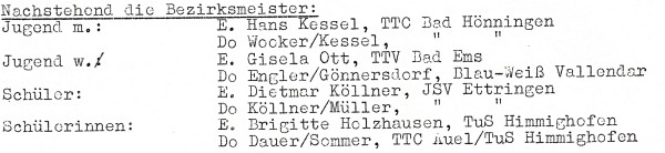 Von den Jugend- und Schülerwettbewerben sind folgende Sieger bekannt: