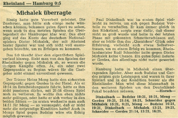| Schöler, Eberhard | Arndt, Erich | -12, 10, -15 | 1:2 |