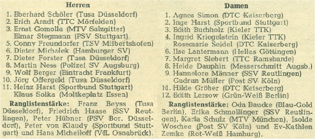 | 1. | Ingrid Bahnert (Kriegelstein) | Kieler TTK | TTVSH |