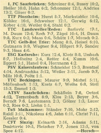 Von der Gruppe 1 liegen die Bilanzen nur aus der Hinrunde vor: