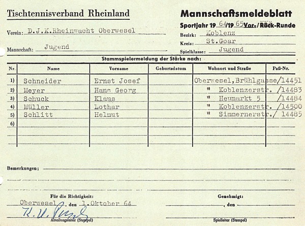 Kreismannschaftsmeister der Jungen wurde der TTC Niedert. Im Endspiel der Sieger der Regionalklassen besiegte die Mannschaft den TV Biebernheim mit 5:2.