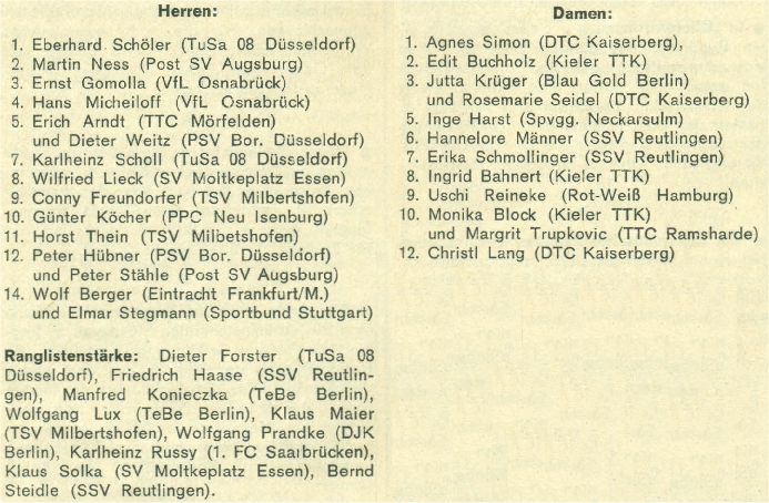 | 2. | Jutta Trapp (Krüger) | TTC Blau-Gold Berlin | BTTV |