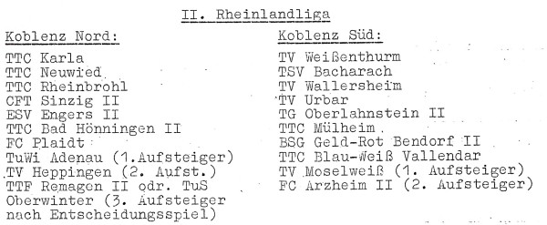 Aus dem Bezirk Koblenz gab es folgende Klasseneinteilung in den beiden 2.Rheinlandligen: