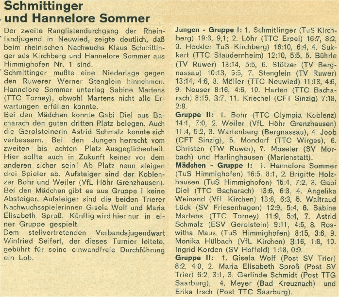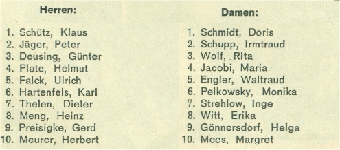 Am Ende der Saison wurden von der Verbandsführung die offiziellen Ranglisten bekanntgegeben: