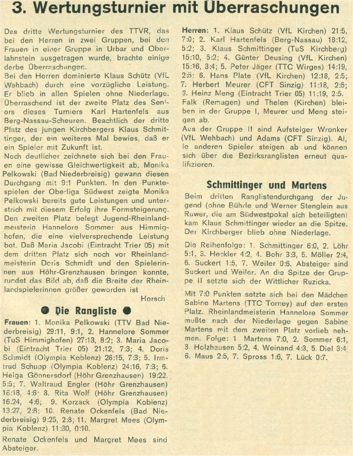 In dieser Saison wurden 3 Wertungsdurchgänge bei den Verbandsranglisten durchgeführt. Hier alle Ergebnisse: