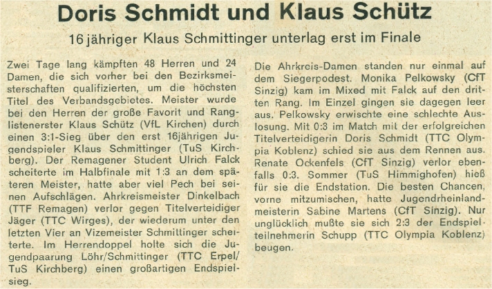 | 1. | Doris Schmidt | TTC Olympia Koblenz | |