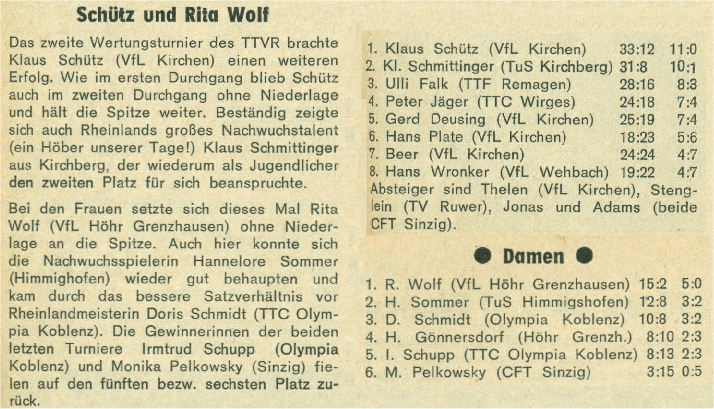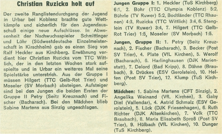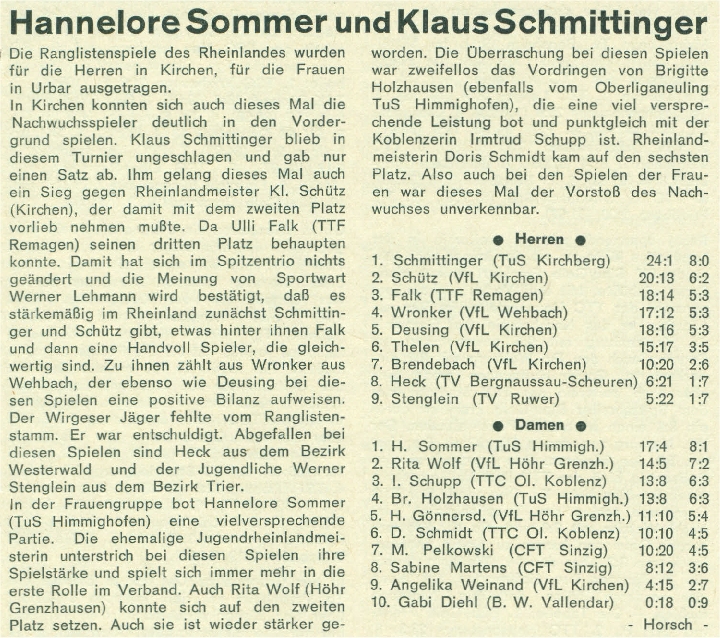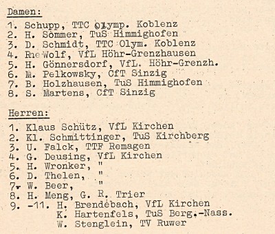 Am Ende der Saison wurden vom Verband die offiziellen Ranglisten bekanntgegeben: