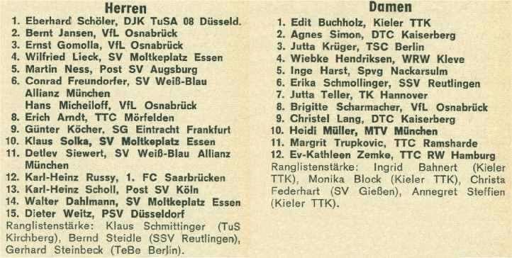 | 10. | Dieter Weitz | PSV Borussia Düsseldorf | WTTV |