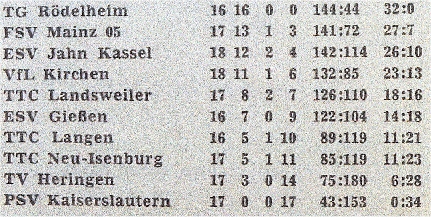 Von der Oberliga Südwest ist bisher nur eine Tabelle kurz vor Ende der Saison verfügbar.