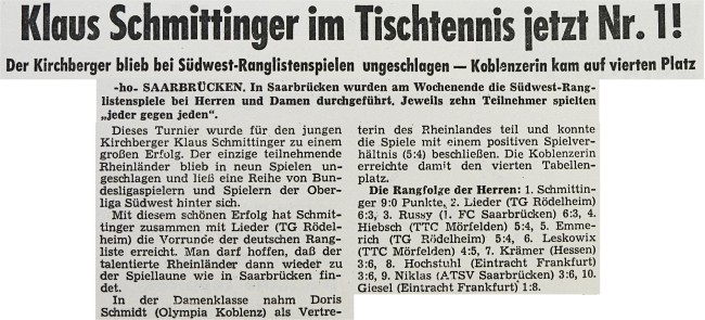 | Südwestdeutsche Rangliste 1967/68 |