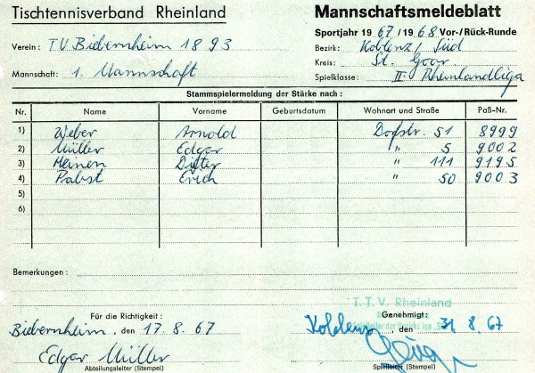 Hier das Meldeblatt der Meistermannschaft: