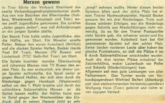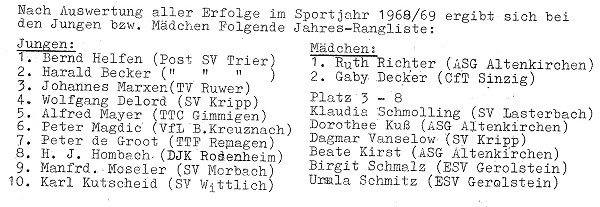 | 1. | Hannelore Dillenberger (Sommer) | TTC Olympia Koblenz |