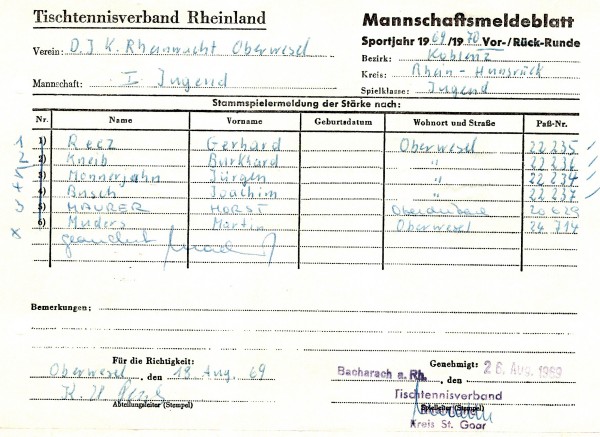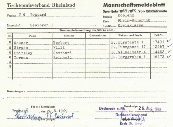 Der TTV Pfalzfeld wurde Meister der 1.Kreisklasse, der SV Oberdiebach und die TG Boppard 2 wurden jeweils Sieger der 2.Kreisklassen.