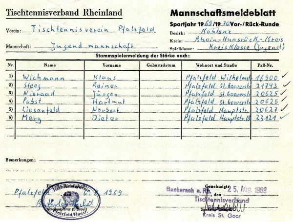 Die junge Pfalzfelder Mannschaft ging aus der 1965 gegründeten Jugend hervor, begann in der Saison 1968/69 im Herrenbereich und stieg dann gemeinsam bis zur 1.Bezirksliga auf. Dort blieben sie lange Jahre zusammen.