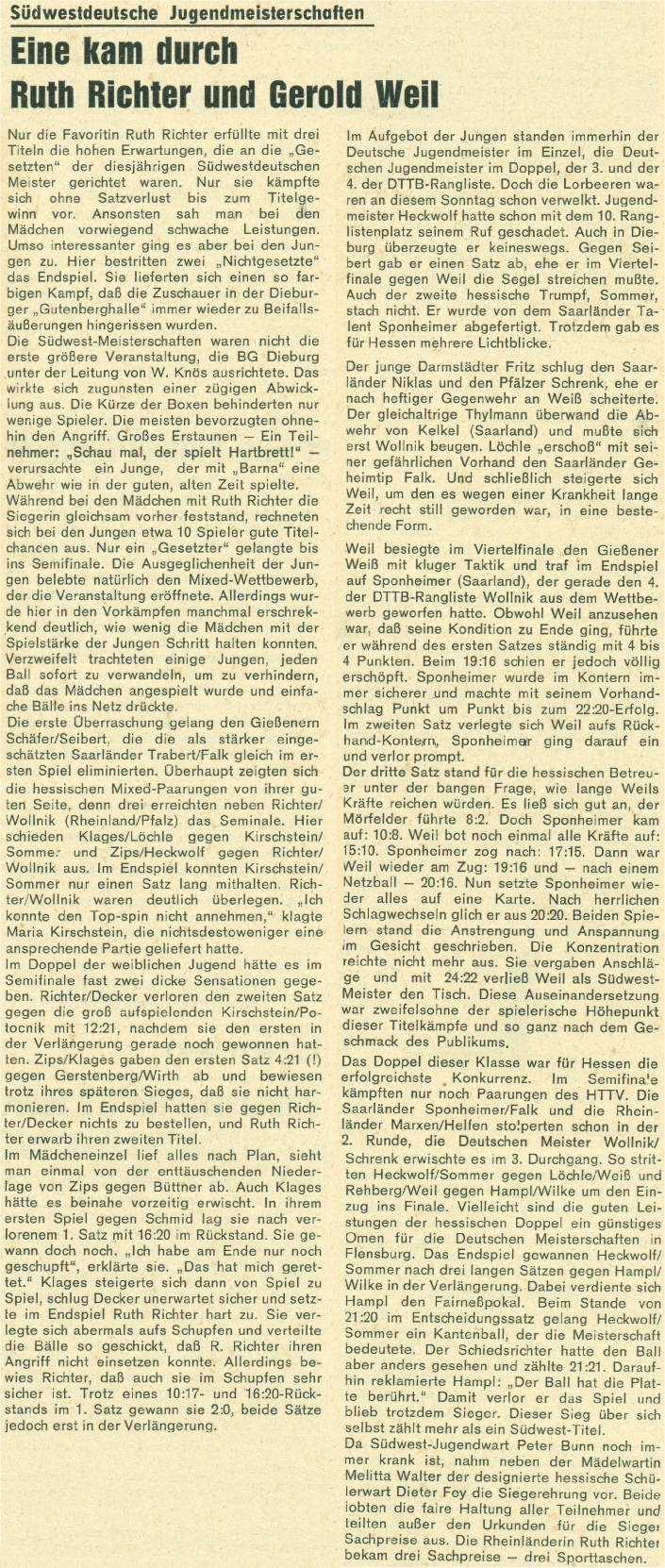 | 1. | Ruth Deutz (Richter) Georg Wollnik | ASG Altenkirchen ASV Landau | TTVR PTTV |