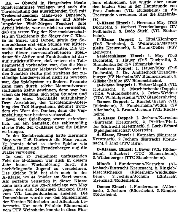 Am 30. und 31.Januar 1971 wurden in der Gräfenbachhalle in Hargesheim die Kreismeisterschaften ausgetragen: