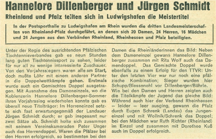 | 1. | Hannelore Dillenberger (Sommer) | TTC Olympia Koblenz | TTVR |