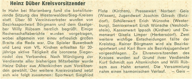 1970/71 wurde im Rahmen der Umstrukturierung im TTVR der Bereich Westerwald/Sieg ins Leben gerufen. Die konstituierende Sitzung fand Mitte 1970 statt: