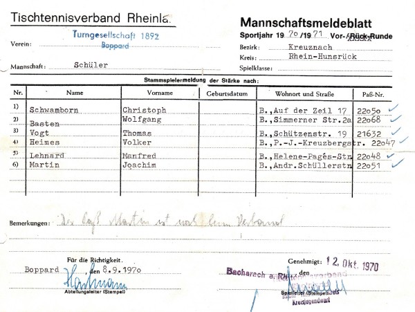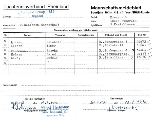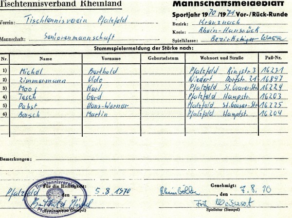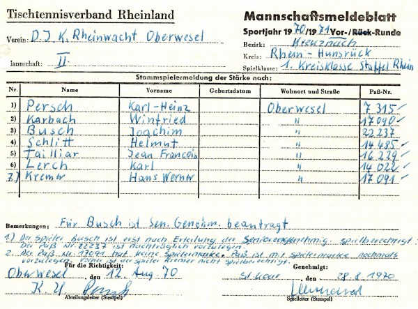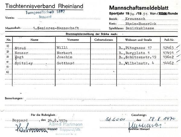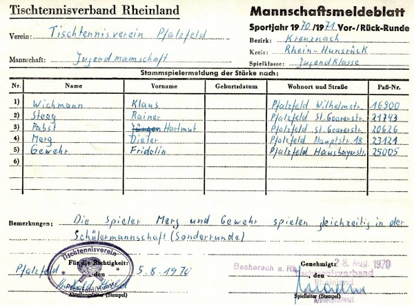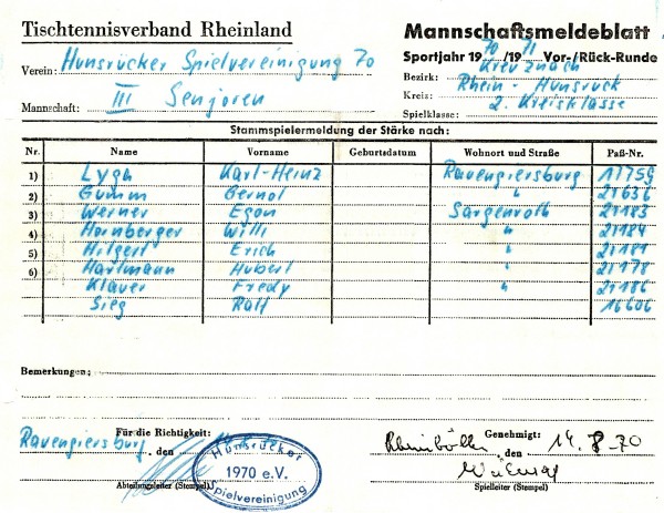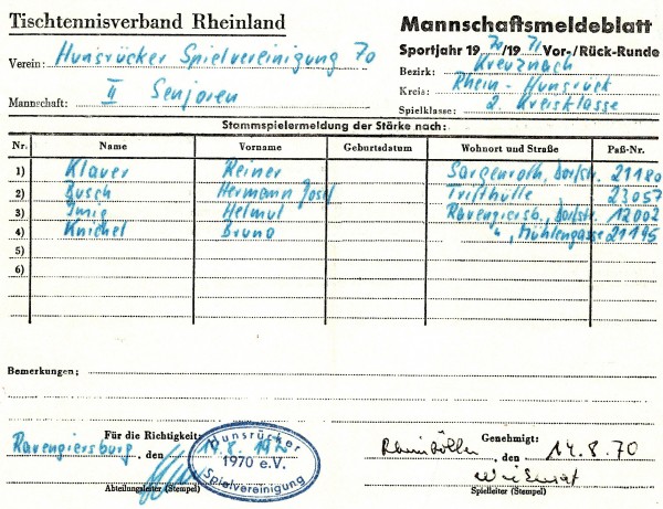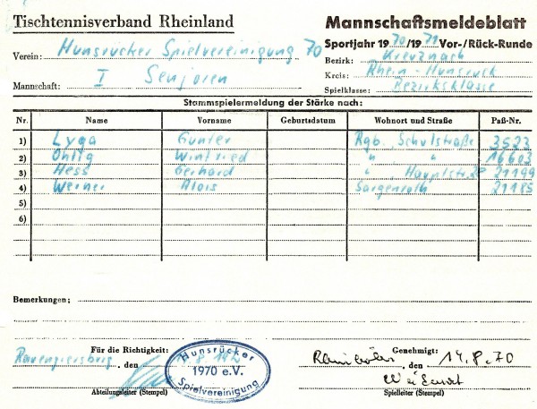 Die Saison 1970/71 stellte einen neuen Abschnitt in der Rhein-Hunsrücker Tischtennisgeschichte dar: Durch eine Verwaltungsreform wurden die Kreise St. Goar und Simmern zum Rhein-Hunsrück-Kreis zusammengelegt. Im Tischtennis wurde dies ab dieser Saison nachvollzogen.
