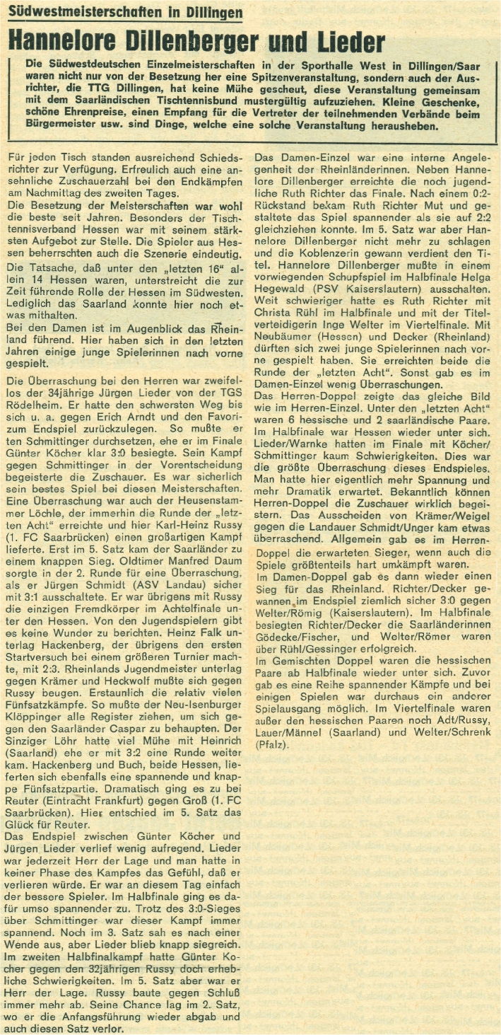 | 1. | Hannelore Dillenberger (Sommer) | TTC Olympia Koblenz | TTVR |