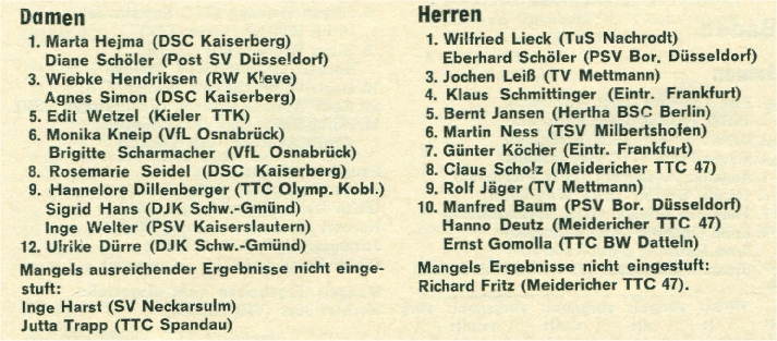 | 9. | Hannelore Dillenberger (Sommer) | TTC Olympia Koblenz | TTVR |