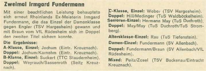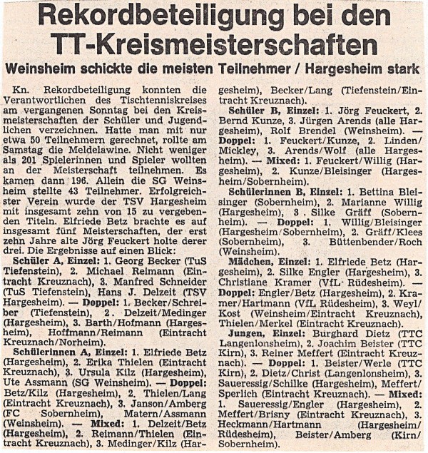 Von den Kreismeisterschaften des Nachwuchses ein Bericht aus einer Kreuznacher Zeitung aus dem Dezember 1972: