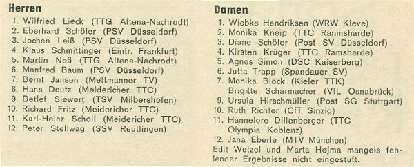 | 2. | Jutta Trapp (Krüger) | Spandauer TTC | BTTV |