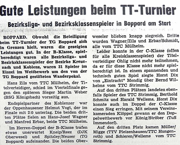 Vom Turnier in Boppard berichtete die Hunsrücker Zeitung am 1.September 1972: