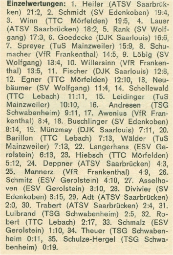 Von der Hinrunde liegen die Bilanzen aller Spielerinnen vor: