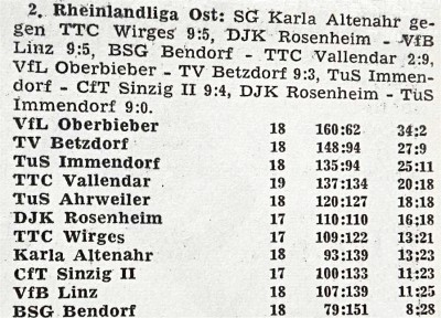 Tabelle 2.Rheinlandliga Ost kurz vor Ende der Saison: