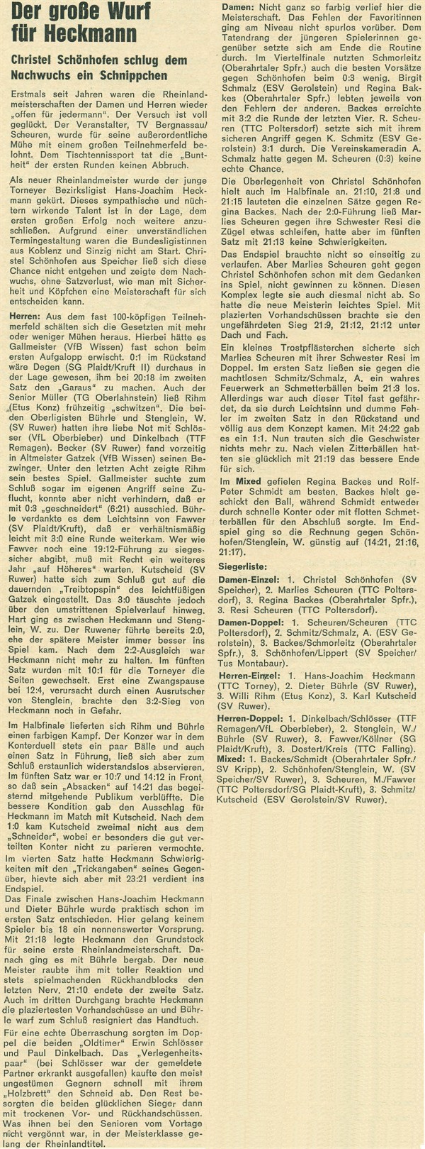 | 1. | Gudrun Wosik (Richter) Robert Horsch | ASG Altenkirchen TTC Grün-Weiß Zewen | |