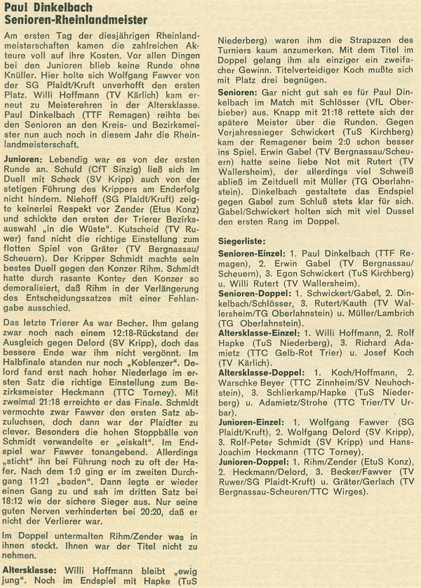 | 3. | Jochen Kößling Horst Schneider | unbekannt TTC Grün-Weiß Zewen | |