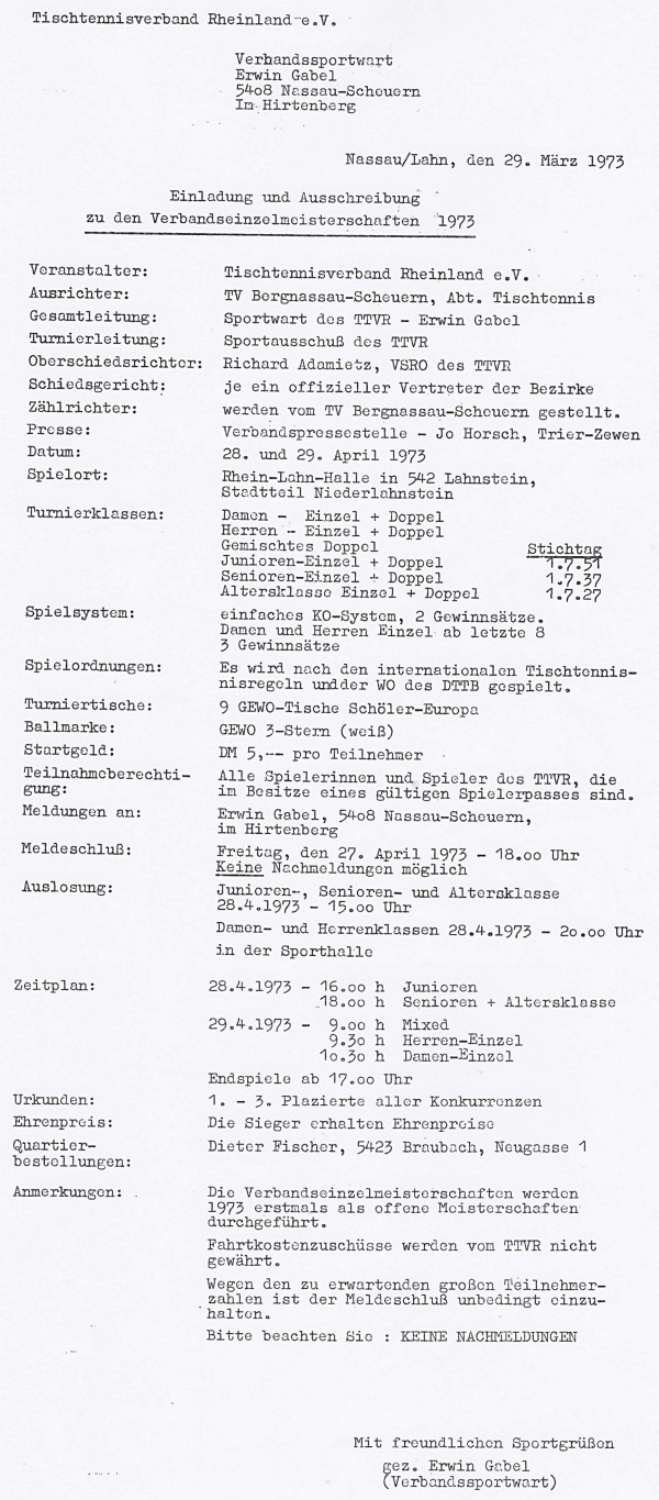 | Verbandsmeisterschaft TTVR 1972/73 | |||
