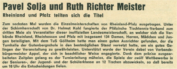 | 1. | Ruth Deutz (Richter) | TTC Olympia Koblenz | TTVR |