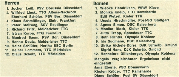 | 5. | Jutta Trapp (Krüger) | Spandauer TTC | BTTV |
