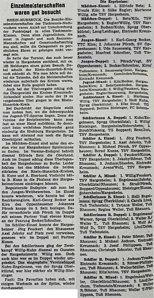 | 2. | Elfriede Stephan (Betz) Joachim Gemünden | TSV Hargesheim SG Eintracht Kreuznach | |