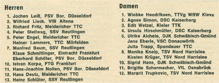 | 6. | Jutta Trapp (Krüger) | Spandauer TTC | BTTV |