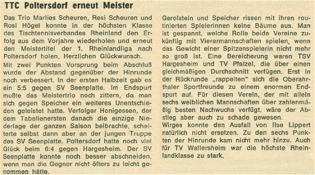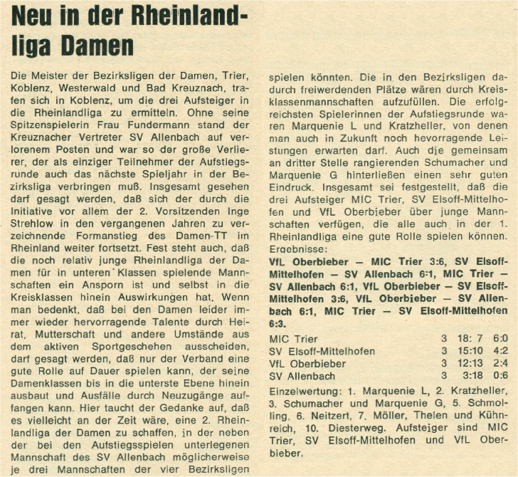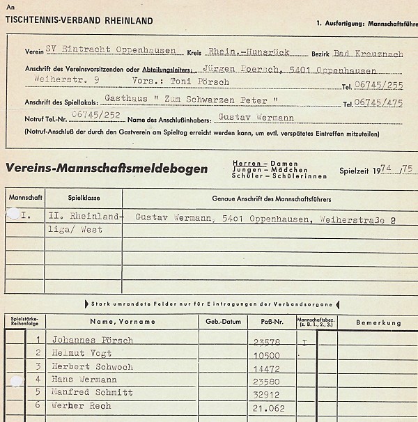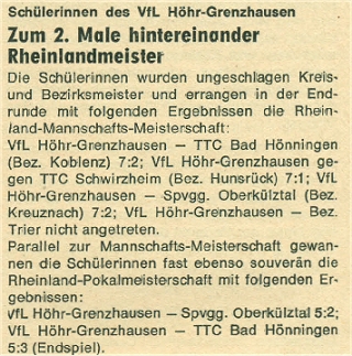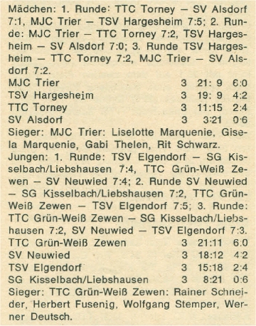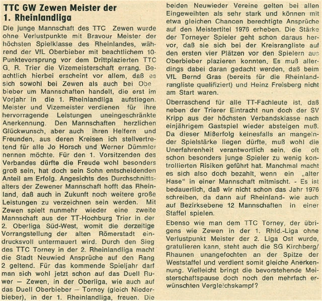 Der TTC Torney siegte in der 2.Rheinlandliga Ost. Es spielten Michael Schneider, Hans-Joachim Martens, Karlheinz Frentzel, Hans-Peter Dümmler, Fred Paus und Hans-Joachim Heckmann.