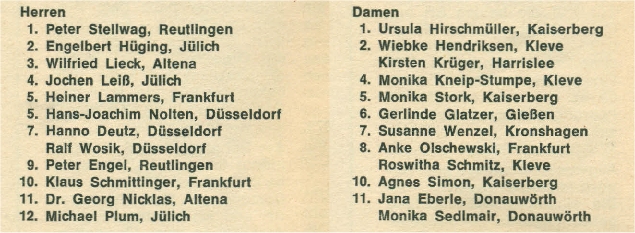 | 7. | Jutta von Diecken | ASV Wuppertal | WTTV |