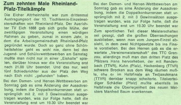 | 2. | Hannelore Dillenberger (Sommer) Manfred Baum | TuS 1904 Himmighofen TTC Zugbrücke Grenzau | TTVR TTVR |