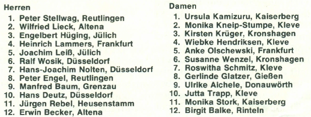 | 8. | Jutta von Diecken | ASV Wuppertal | WTTV |