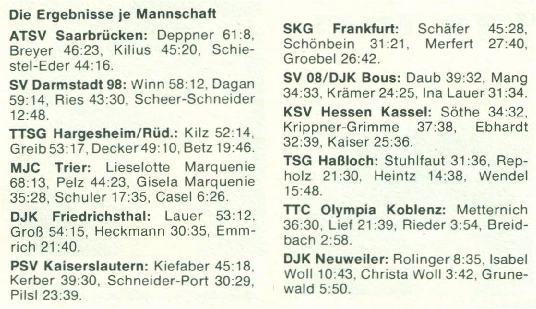 | 2 | Sordi (Deppner), Jutta | 53 | 61 | 8 | ATSV Saarbrücken |