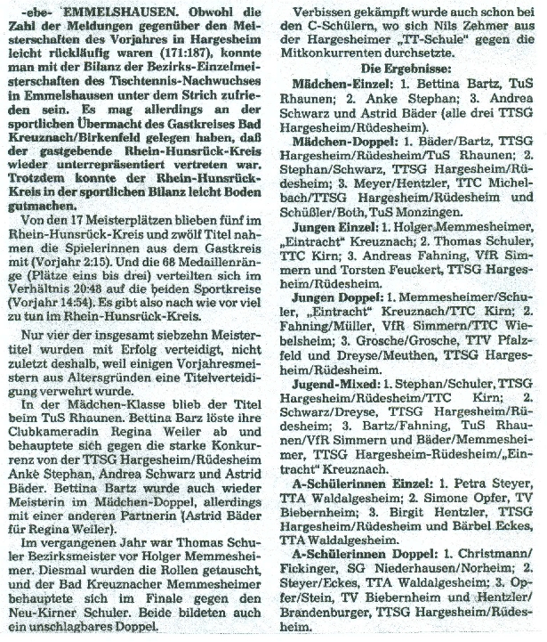 | 1. | Astrid Bäder Bettina Bartz | TTSG Hargesheim/Rüdesheim TuS Rhaunen | |