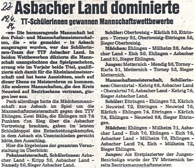 Meisterschaft und Pokal Jugend und Schüler