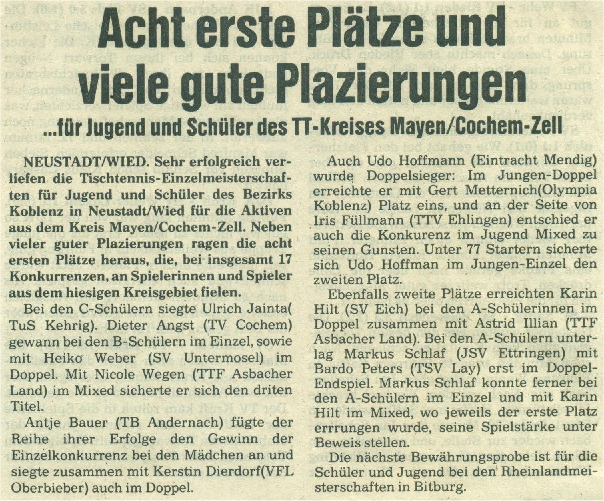 Vom Abschneiden des Nachwuchses aus dem Kreis Mayen-Cochem-Zell wird in der regionalen Presse berichtet: