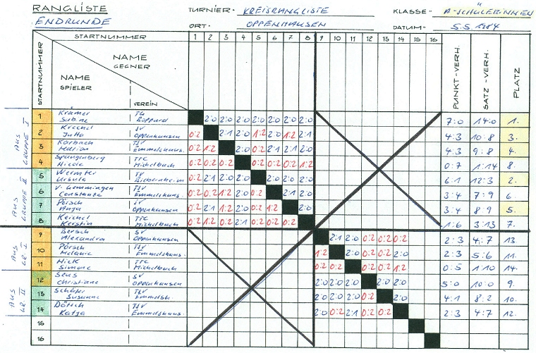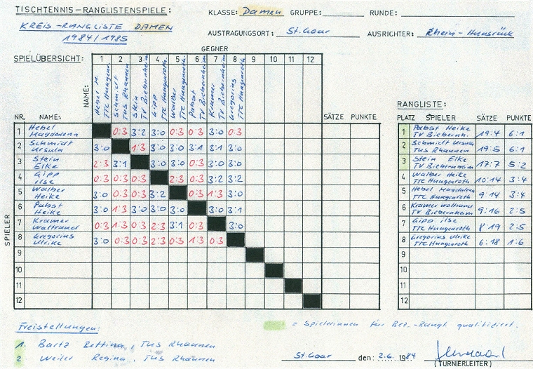 Von Karlheinz Eberhard wurden die Aufzeichnungen zu den Ranglisten der Damen, Mädchen und Schülerinnen zur Verfügung gestellt: