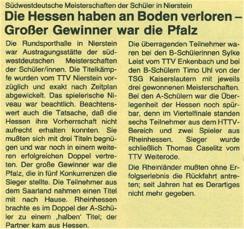 | 1. | Sylke Bayer (Leist) Timo Uhl | TTV Enkenbach TSG Kaiserslautern | PTTV PTTV |