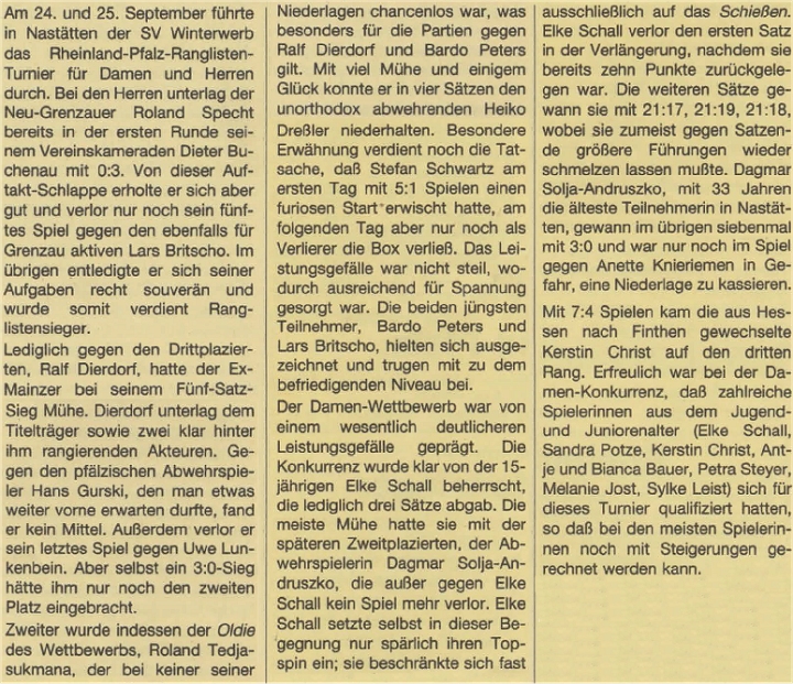 | 2. | Dagmar Solja-Andruszko | BTTF Zweibrücken | PTTV |